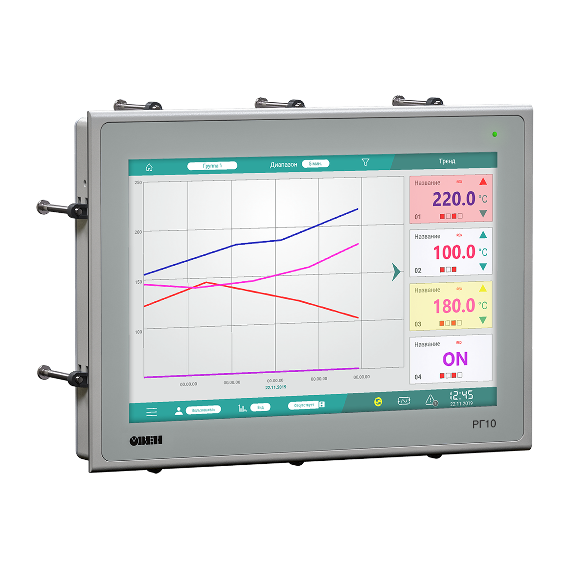 Многоканальный видеографический регистратор предназначен для сбора данных с различных устройств с сохранением в архив на внешний носитель, визуализации и отработки несложной логики для управления исполнительными механизмами через модули вывода.