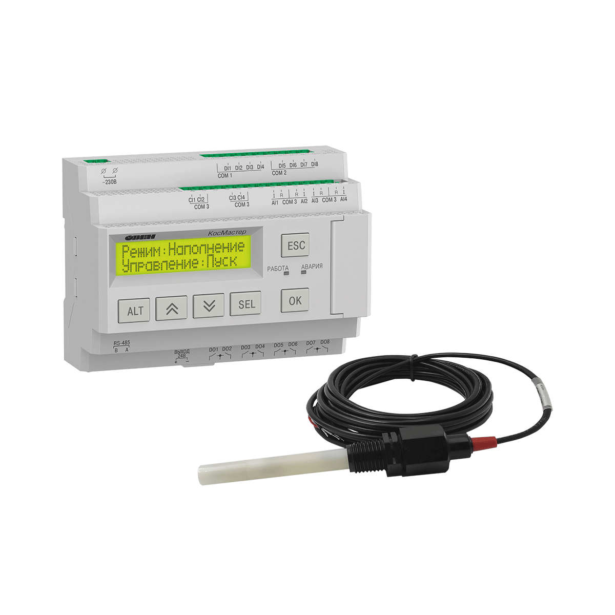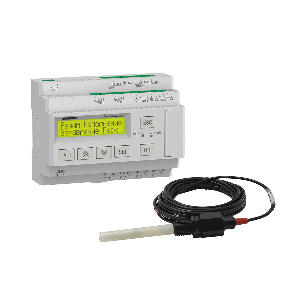 КосМастер – блок с готовыми алгоритмами для управления установками обратного осмоса с датчиками электропроводности в комплекте. Предназначен для применения в бытовых и промышленных системах. Прибор обеспечивает защиту системы от аварийных ситуаций, контролирует качество воды, управляет исполнительными механизмами.