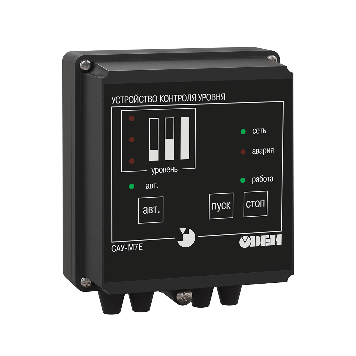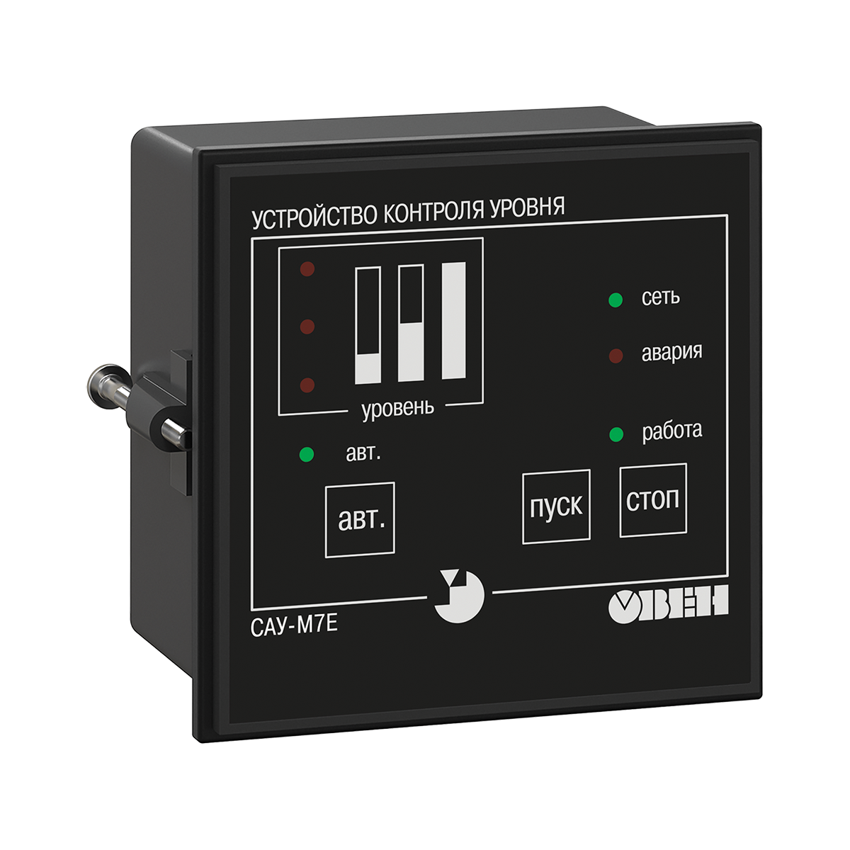 Прибор САУ-М7Е обеспечивает контроль уровня жидких или сыпучих материалов в резервуаре. Может управлять заполнением, осушением или поддержанием уровня в отопительных котлах, водонапорных башнях, зернохранилищах и т.п.