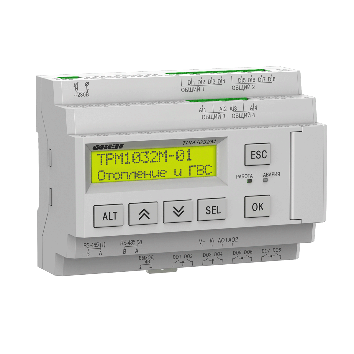 ТРМ1032М – контроллер с готовыми алгоритмами для регулирования температуры в системах отопления и ГВС. Предназначен для применения в индивидуальных и центральных тепловых пунктах (ИТП и ЦТП) и котельных. Поддерживает управление от 1 до 15 контуров потребителей в зависимых и независимых системах. Контроллер отопления и ГВС регулирует температуру по заданной уставке или отопительному графику, управляет запорно-регулирующим клапаном (КЗР), циркуляционными насосами, поддерживает давление в системе отопления, управляя контурами подпитки, защищает обратный теплоноситель от превышения температуры.
