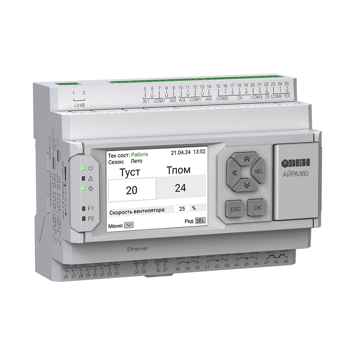 АЙРА360 – это современное конфигурируемое устройство с питанием 24 В, созданное на базе программно-аппаратной платформы ПР205-24.1211.02.2.0.