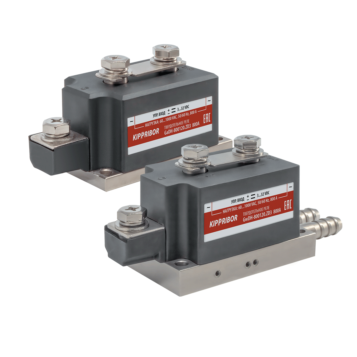 Твердотельные реле GwDH и GaDH специально разработаны для коммутации мощной нагрузки, индуктивной нагрузки, а также нагрузки, пусковые токи которой сложно прогнозировать (нагрузка индуктивная большой мощности, трансформаторы, сварочное оборудование). ТТР данных серий охватывают наиболее широкий диапазон коммутируемых токов.