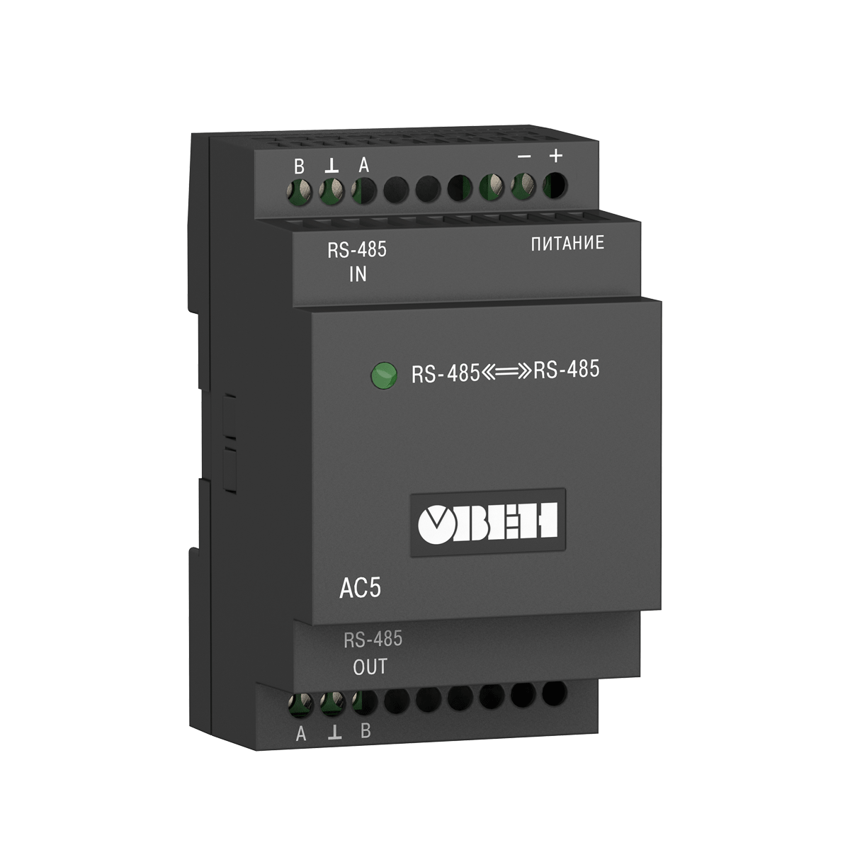 Повторитель интерфейса RS-485 ОВЕН АС5 предназначен для усиления ослабленного сигнала интерфейса RS-485 и применяется в случаях, когда количество приборов в сети больше 32-х и/или длина линии связи между приборами превышает 1200 метров.